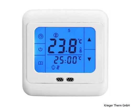 Dieses elegante Unterputz Thermostat mit Wochenprogramm ist für die Montage in einer UP-Dose konstruiert. Der integrierte Sensor misst die Raumtemperatur und schaltet bei Unterschreitung der Solltemperatur den thermischen Stellantrieb (max. 16A) an.